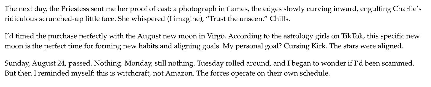 Earlier this week, the radical feminist website Jezebel posted an article talking about how they hired witches to curse Charlie Kirk. Excerpts:
