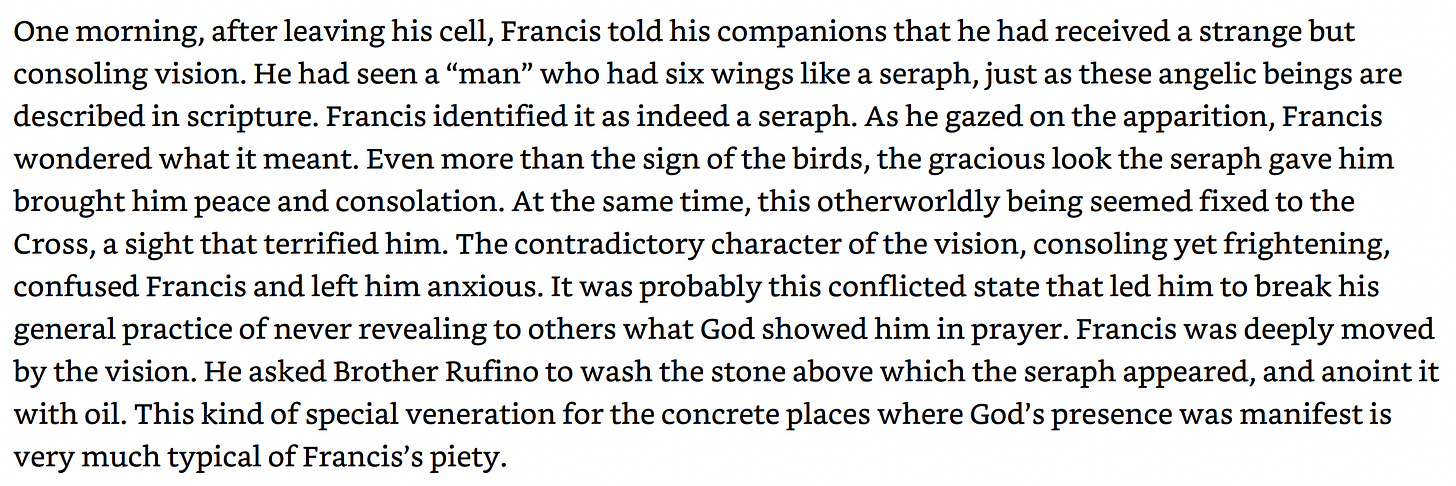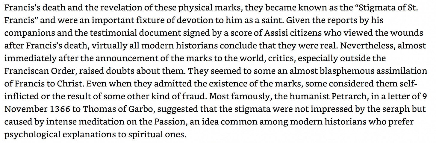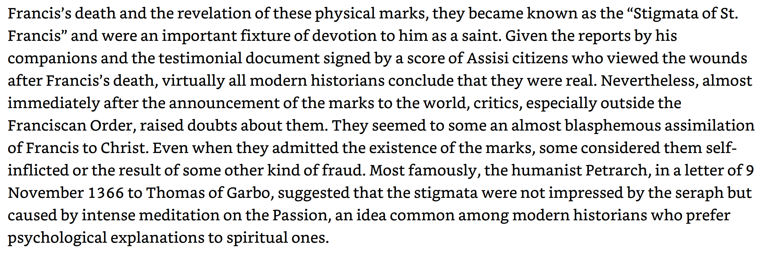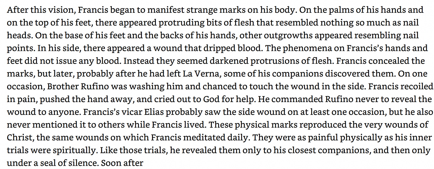 It’s all there. It’s there for the faithful to see. Francis of Assisi was a flesh and blood man, as well as one of the greatest saints of the Latin church.