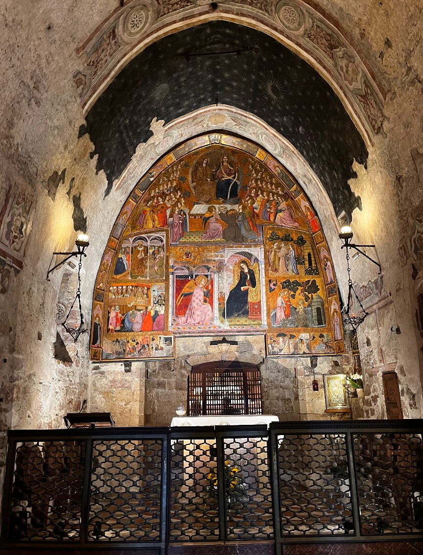Here’s a side view, from inside the greater basilica. Francis spent his last days inside that chapel, and then died, in 1226, inside his cell, which is about 15 feet away, on the other side of the chapel as you see here: