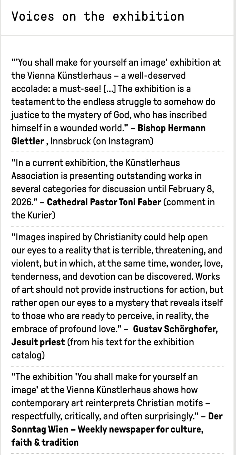 This group of Catholics held a rosary protest outside the museum this week. But not all Austrian Catholics are offended. From the exhibition website (notice the remarks by a bishop and by a Jesuit, who is the rector of Vienna’s Jesuit parish: