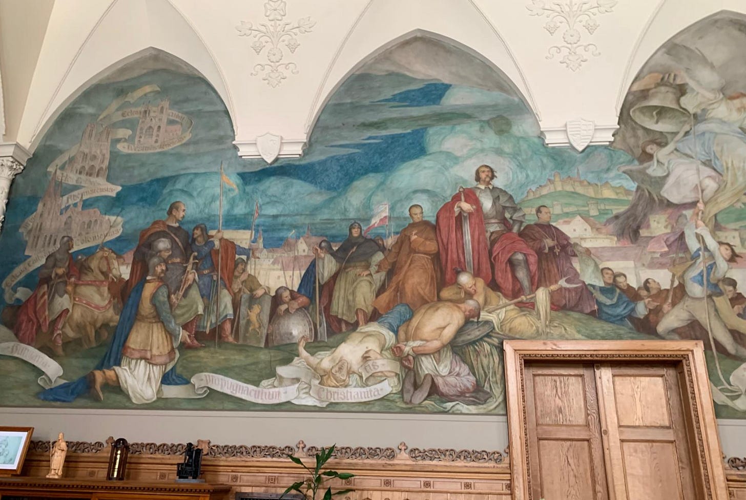 A friend of mine shared that image with me. He photographed it in the Hungarian parliament building. It’s an image of Janos Hunyadi a 15th century Hungarian warlord who protected the Christian lands from the Turks. My friend pointed out that in the image, you can see that the churches in the background are Westminster Abbey and other Western churches. T…