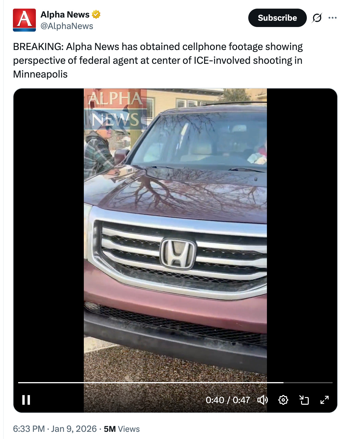 First, here’s the footage from the point of view of the ICE agent filming Renee Good’s obstruction of ICE agents in Minneapolis. This is a screen grab; click here for the film: (Sorry, link is fixed now)