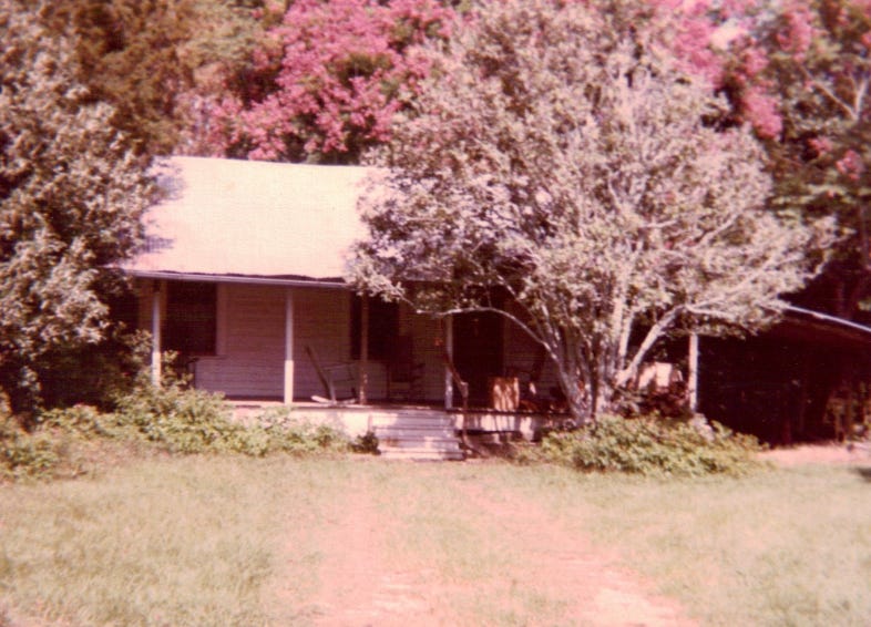 So, I had this idea that maybe I should just build a cabin on the family land I own there, and move to West Fel to write a modern version of The Thanatos Syndrome. There’s more to it than that. As longtime readers know, the intellectual foundation for my own life was laid in the modest antebellum cabin on family land in which dwelled my Great-Great Aunts Lois and Hilda, born in Starhill (our little part of West Fel) in the 1890s. They had lived long lives of adventure, having served, for example, as Red Cross nurses in Dijon during the Great War. Here’s a photo of their cabin, which was torn down sometime in the 1990s after they died, and the land fell into the hands of some other branch of the family: